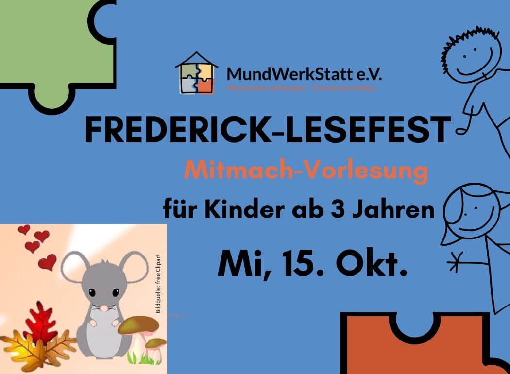 Der Verein MundWerkStatt e.V. lädt am Mittwoch, 15.10. von 15.30-17.00 Uhr alle kleinen und großen Bücherwürmer zu unserem nächsten Mitmach-Vorlesenachmittag ein.