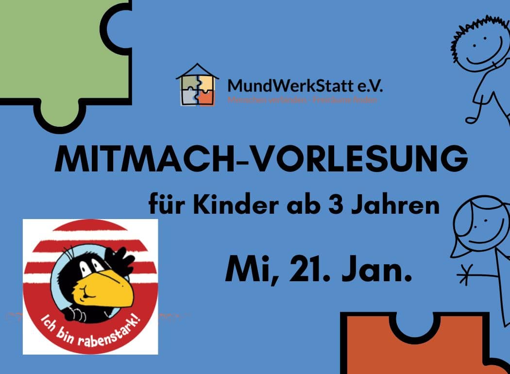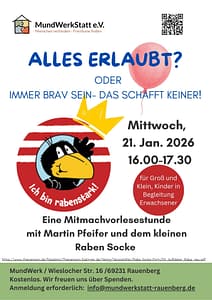 Wir laden euch zu einer Vorlesestunde zum Mitmachen am Mittwoch, 21. Januar 2026 ein. Es gibt einen kleinen Snack und Getränke.