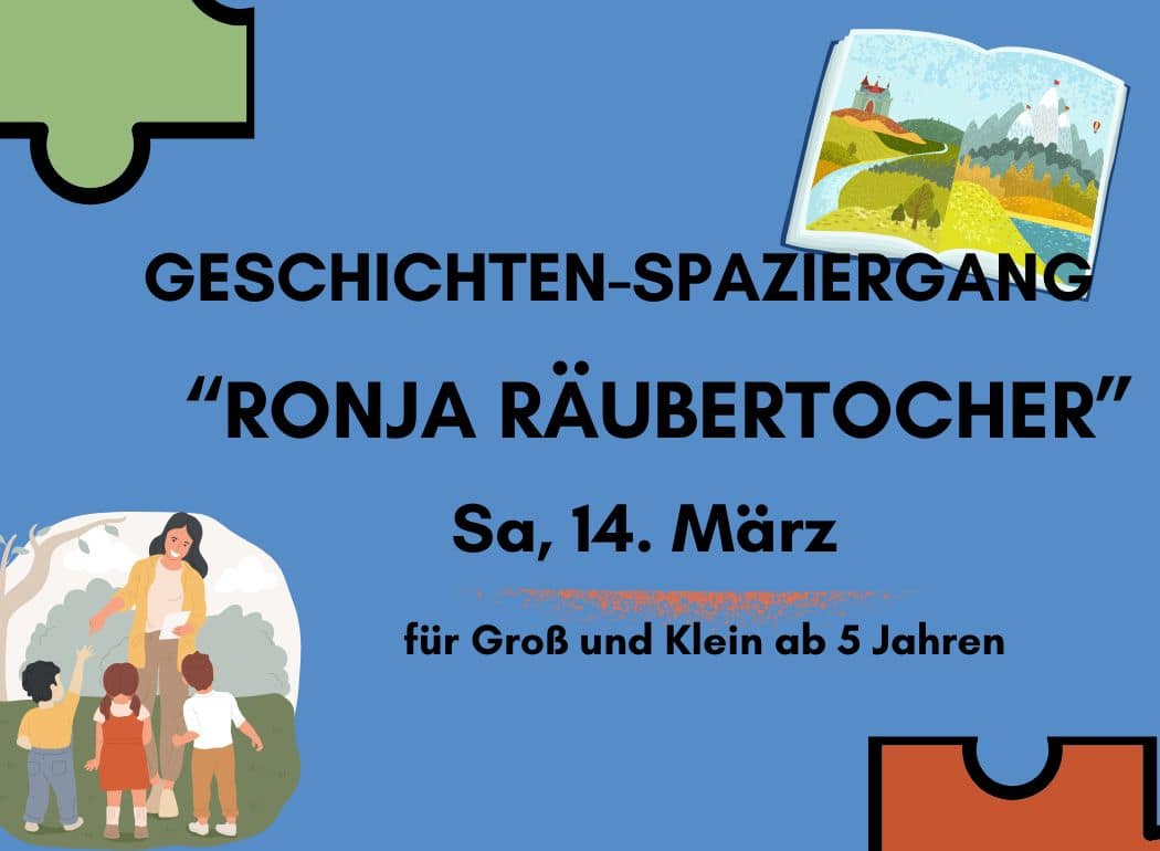 MundWerkStatt e.V. und die Geschichtenerzählerin Mechthild Goetze-Hillebrand laden Groß und Klein zu einem „Spaziergang durch Rauenberg“ mit Geschichten, Suchaufgaben und Spielen zu Ronja Räubertochter ein. Alle können mitkommen, die neugierig sind sowie Spaß und Freude mit einem Kinderbuchklassiker erleben wollen.