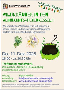 Am Do., 11. Dezember geht’s mit Sigrun Heußler an den Weihnachts-Hexen/Hexerkessel!